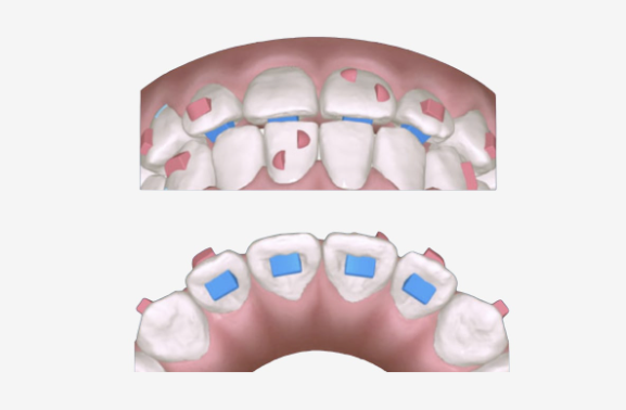 angelAttach, the Angel Aligner precise attachment system is a revolutionary attachment system validation and optimized by the Angel Aligner masterForce platform. There are two types of attachments, conventional attachments that are bonding to the teeth and aligner pressure points designed and manufactured using our unique and advanced manufacturing technology. Combining biomechanics, material science and mechanics, the position and morphology of our attachments are designed to achieve better force expression and a more effective and precise control of tooth movement with clear aligners. In addition Angel Aligner allows the use of other auxiliary tools such as elastics, TADs and segmental archwires with our unique innovations.