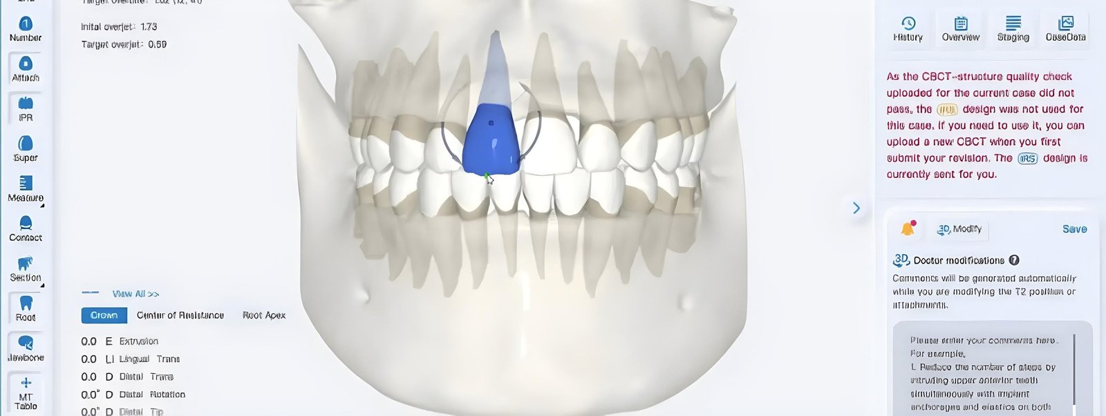 In clinical practice, doctors are enabled to modify the root & alveolar relationship and root arrangement through the 3D Tooth Adjustment (ADJ) tool in iOrtho, instead of feeling frustrated due to the restriction from making modifications on the root though comments can be input. Modification of root design at will The 3D project modification in Ortho IRS provides 4 control points to meet the requirements for direct modification of 4 different modes of tooth movement.
